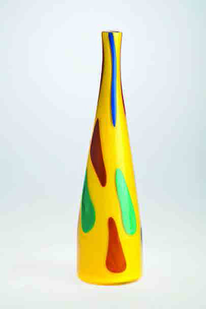 Alessandro Mendini Vaso della serie “Arsos” in vetro incamiciato giallo con riporti di colore di forma troncoconica, 1988/1989, altezza cm 36