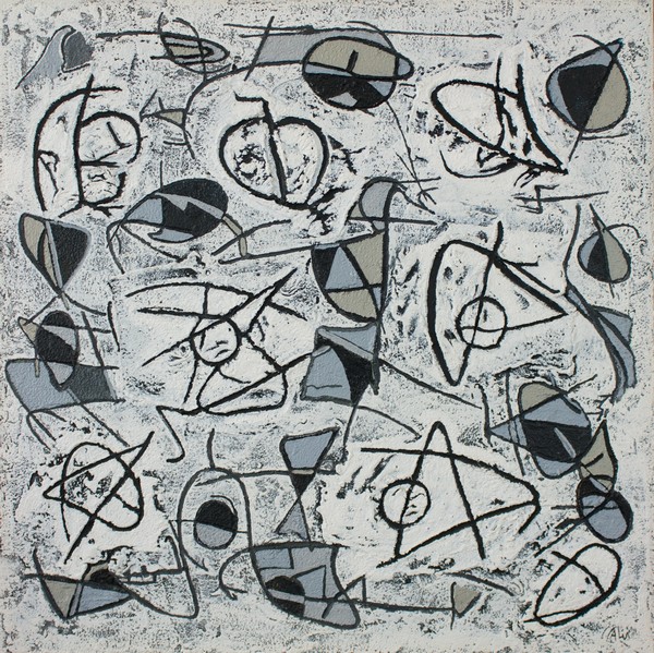 Lot 356 | Carlo Calvi, Graffiti, 2002 Tecnica mista su tela, cm. 90x90 Firma in basso a...