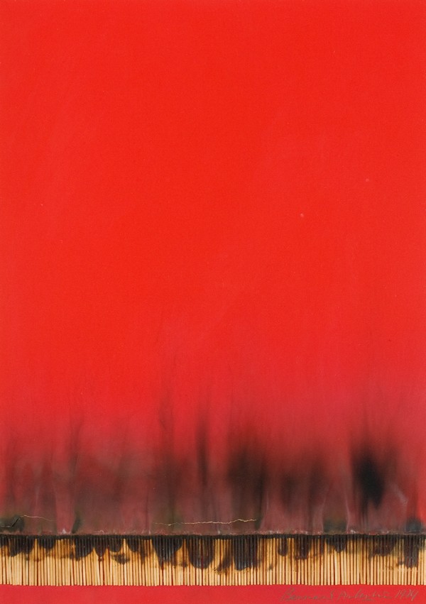 Bernard Aubertin, Bruciatura, 1974 Fiammiferi bruciati su cartone su tavola,...