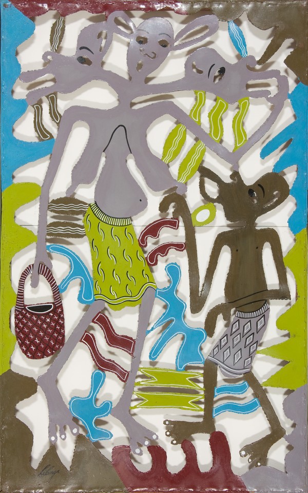 George Lilanga, Senza titolo, Olio su metallo decoupé, cm. 122x76 Firma in basso a sinistra. Provenienze: studio dell'artista; Collezione Rosenfeld, acquisito direttamente dall'artista. Importante opera di George Lilanga eseguita su metallo decoupé, le più ricercate internazionalmente.