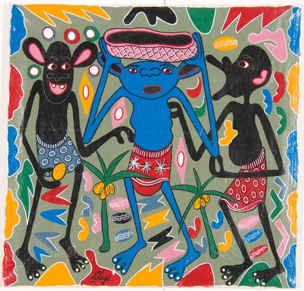 George Lilanga, Umebeba nini? Tunataka tukusaidie mzee, 1996 Olio su tela,...