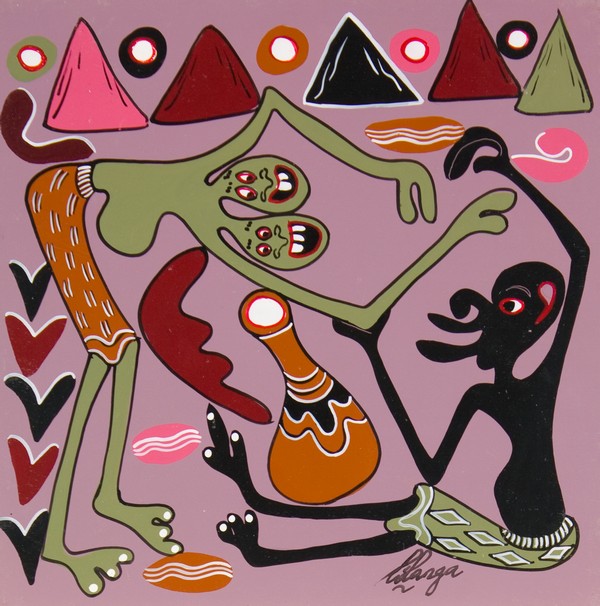 George Lilanga, Huu ushauri wangu ninaokupa uzingatie utakusaidia, Olio su tavola, cm. 30x30 Firma in basso a destra. Certificato di autenticità su foto a cura della Capt.Felix Lorenz,Lauenburg (ELbe).