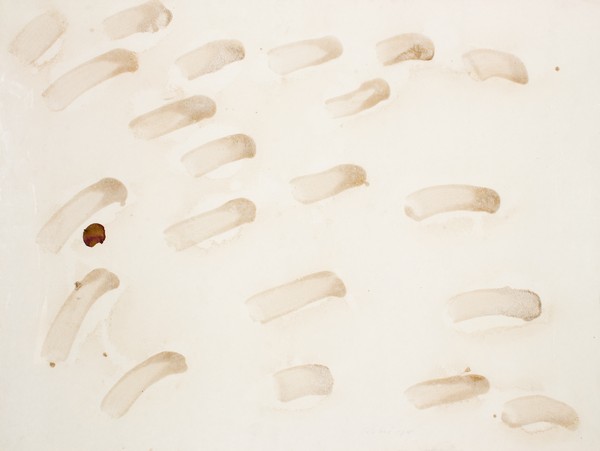 Pierpaolo Calzolari, Senza titolo, 1968 Sale, petali di rose e tecnica mista su cartone, cm. 76x100 Firma in basso al centro. Autentica dell'artista su foto. Sul retro etichetta dello Studio De Ambrogi, Milano ed etichetta della Galleria Spazia, Bologna (in allegato all'autentica).