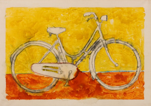 Mario Schifano, Senza titolo, 1972 Smalto su tela, cm. 70x100 Firma sul retro. Certificato di autenticità a cura dell'Archivio Mario Schifano al n. 01788100925. Provenienza: Galleria Mazzoli, Modena, come da dicitura sul certificato dell'Archivio Mario Schifano. Etichetta della Galleria Papier, Sabaudia. Esposizioni: "Pedalando con Schifano", Galleria Papier, Sabaudia.