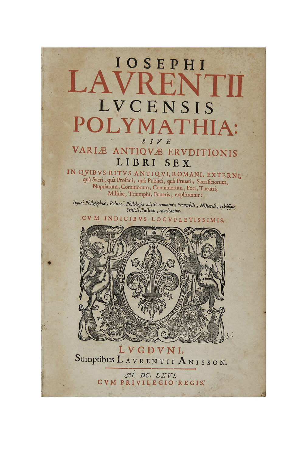 LAURENZI, Giuseppe (n.1583) - Polymathia: sive variae antiquae eruditionis libri sex. Lione: Lorenzo Anisson, 1666.
