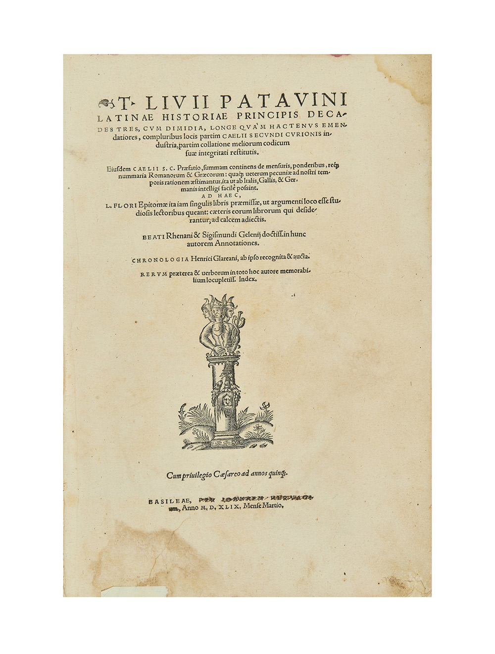 LIVIO, Tito (59a.c.-17a.C.) - Latinae historiae principis decades tres. Basilea: Joannes Hervagius, 1549.