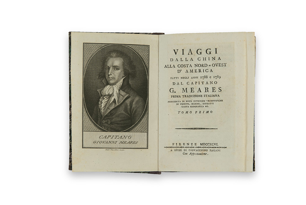 MEARES, John (1756?-1809) - Viaggi dalla China alla Costa Nord-Ovest d'America fatti negli anni 1788 e 1789. Firenze: Giovacchino Pagani, 1796-97.