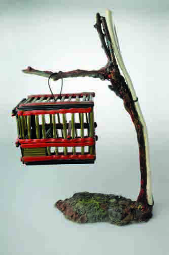 Toni Zuccheri “Gabbia da richiamo”, composizione con una gabbia in canne di...