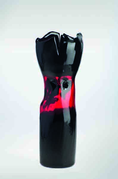 Toni Zuccheri Vaso della serie “Cartocci” in vetro nero e rosso di forma cilindrica con superficie modellata e orlo tagliato, 2007, altezza cm 38