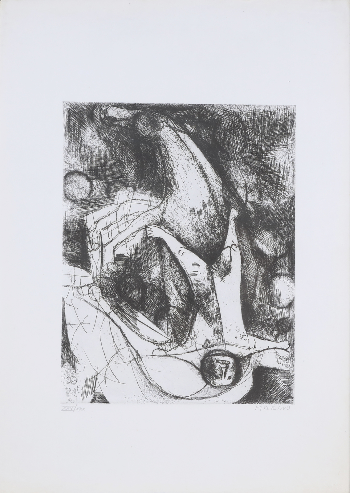 MARINI MARINO (1901 - 1980) Untitled. Etching. Cm 48,00 x 67,00. XXV/XXX. Edition and signature lower in pencil. Graphis Art, Livorno stamp lower right. Plate size: 40 x 31.5 cm.. Cornice presente