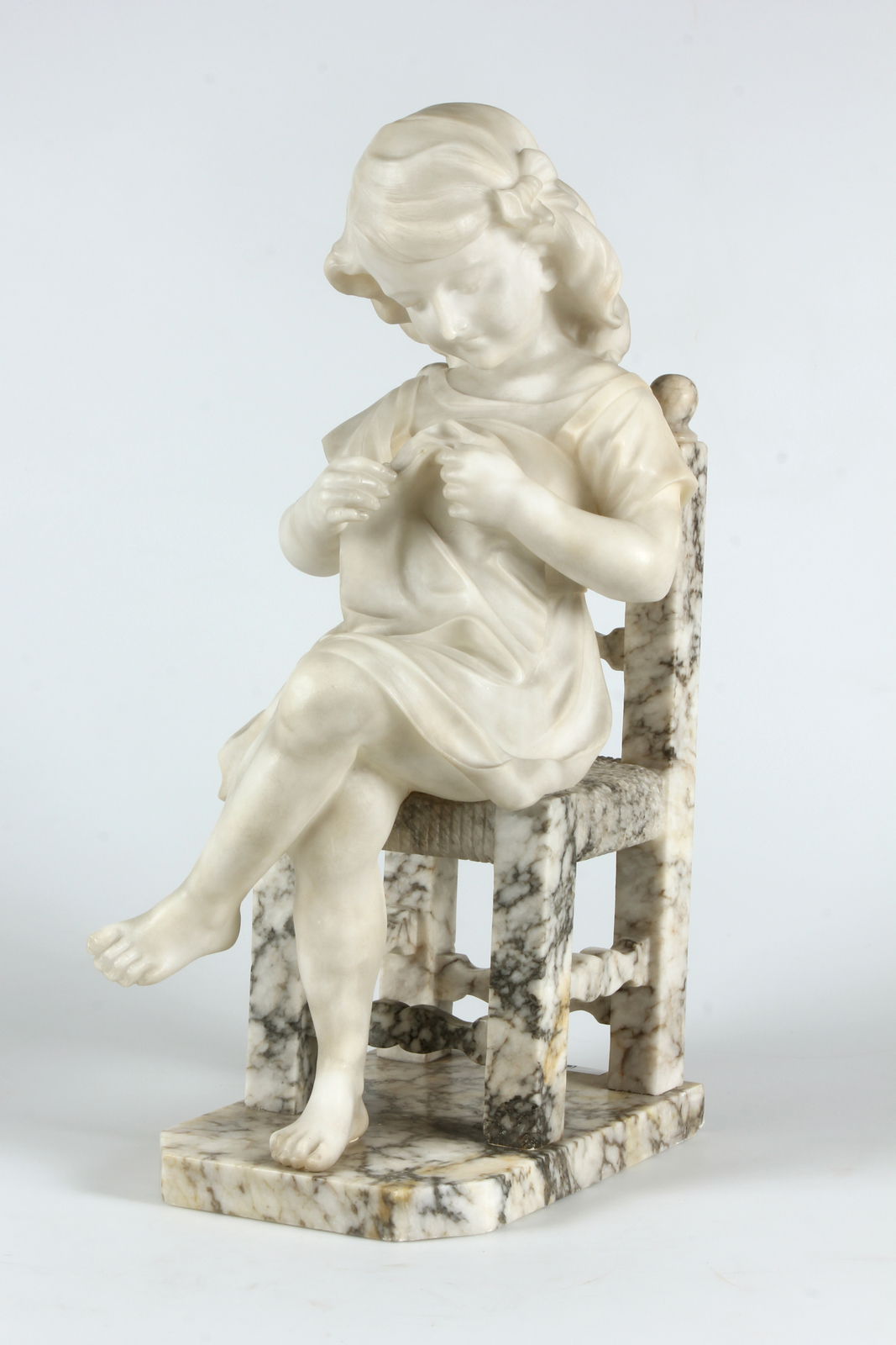 MESSINA FRANCESCO (1900 - 1995) Bambina. 1945. Scultura in marmo. Cm 17,50 x 49,00 x 25,50. Firma al retro. Autentica dell'artista su fotografia. Autentica su fotografia della Galleria d'Arte Rinaldo Rotta, Genova.