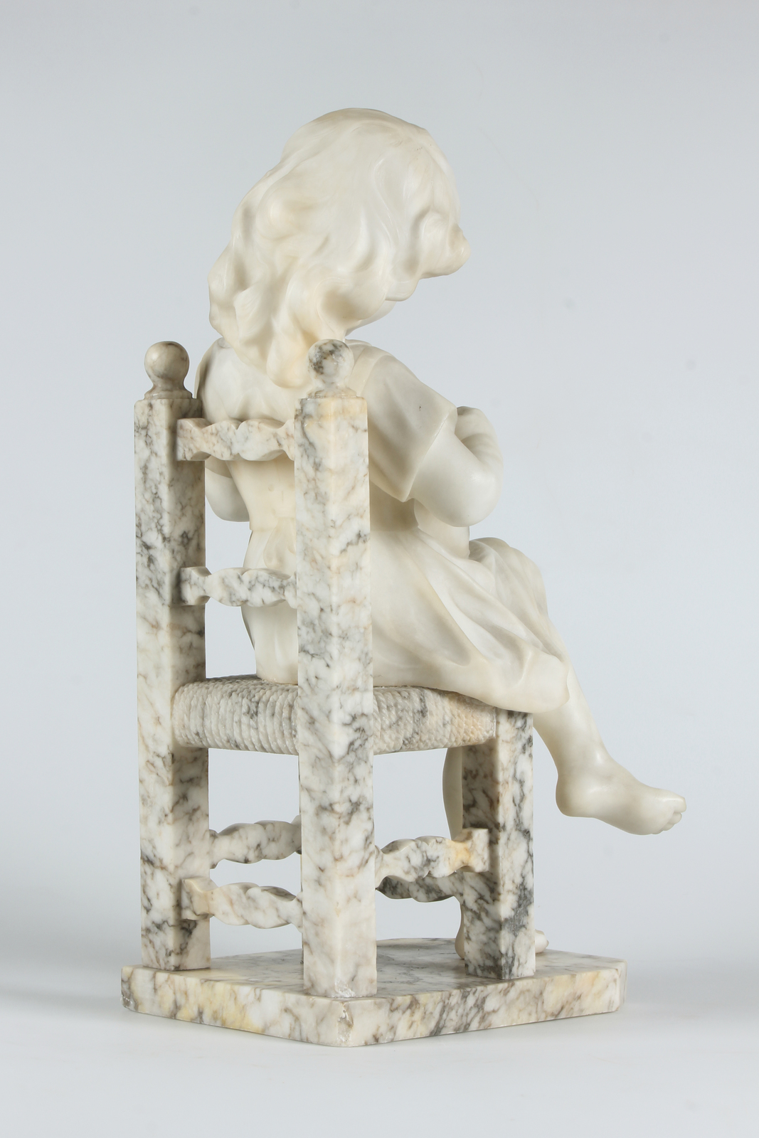 MESSINA FRANCESCO (1900 - 1995) Child. 1945. Marble sculpture. Cm 17,50 x 49,00 x 25,50. Signature at the back. Artist's authenticity certificate on photo. Rinaldo Rotta Art Gallery, Genoa authenticity certificate on photo.