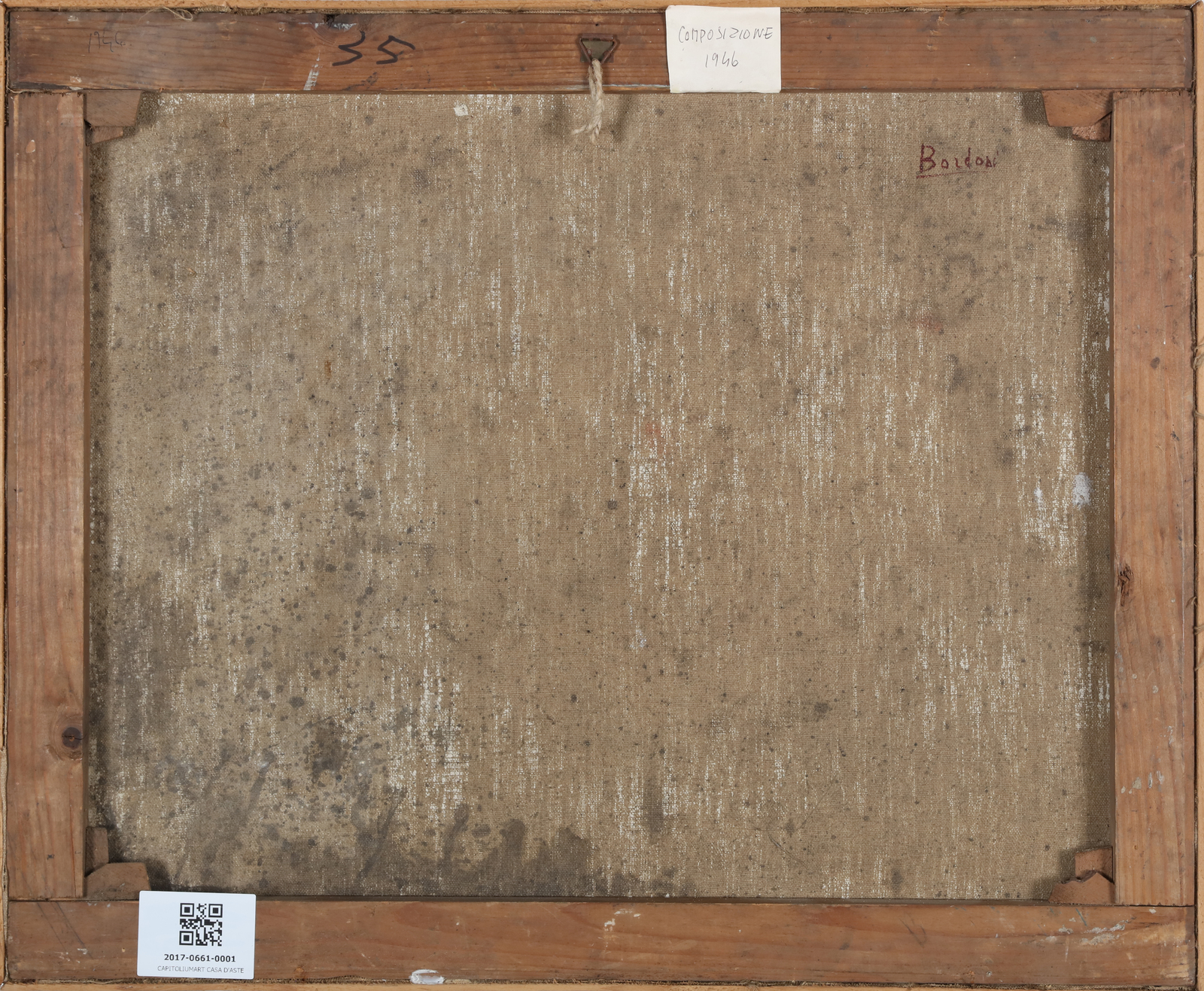 BORDONI ENRICO (1904 - 1969) Composition. 1946. Oil on canvas . Cm 55,00 x 45,00. Signature at the back. Small defects. Arnaldo Bordoni's authenticity certificate on photo. Cornice presente