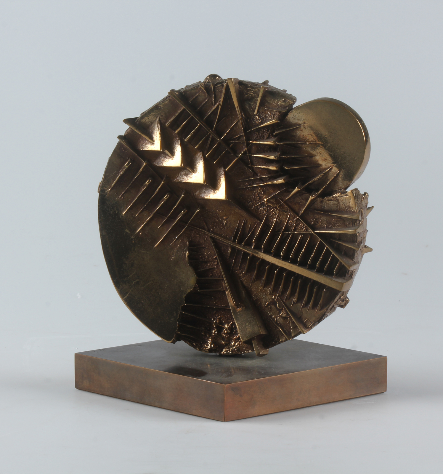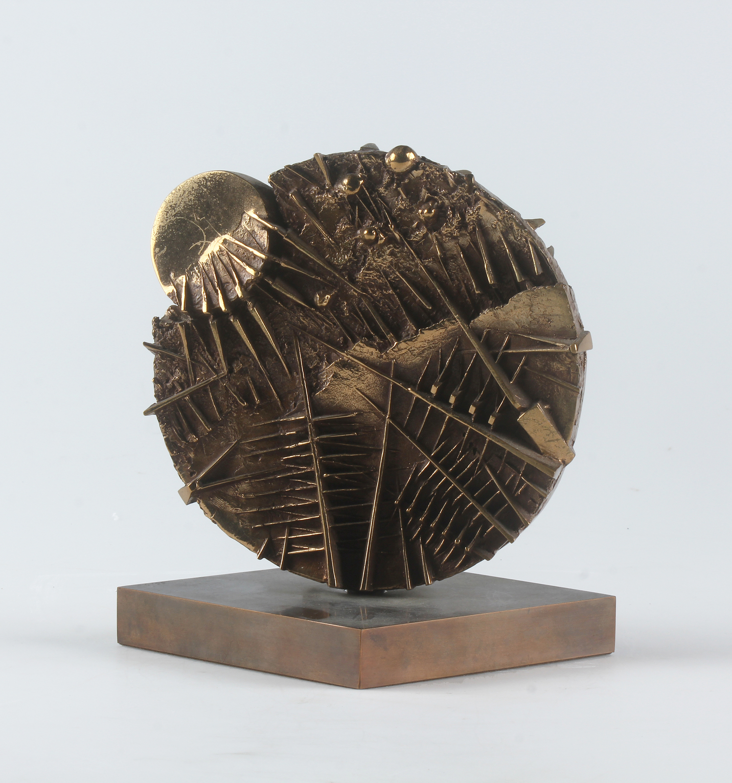 POMODORO ARNALDO (n. 1926) Disk. 1995. Bronze. Cm 13,00 x 16,00. 33/50. Signature and edition engraved at the base. Artist's authenticity certificate on photo. Indicod's production.