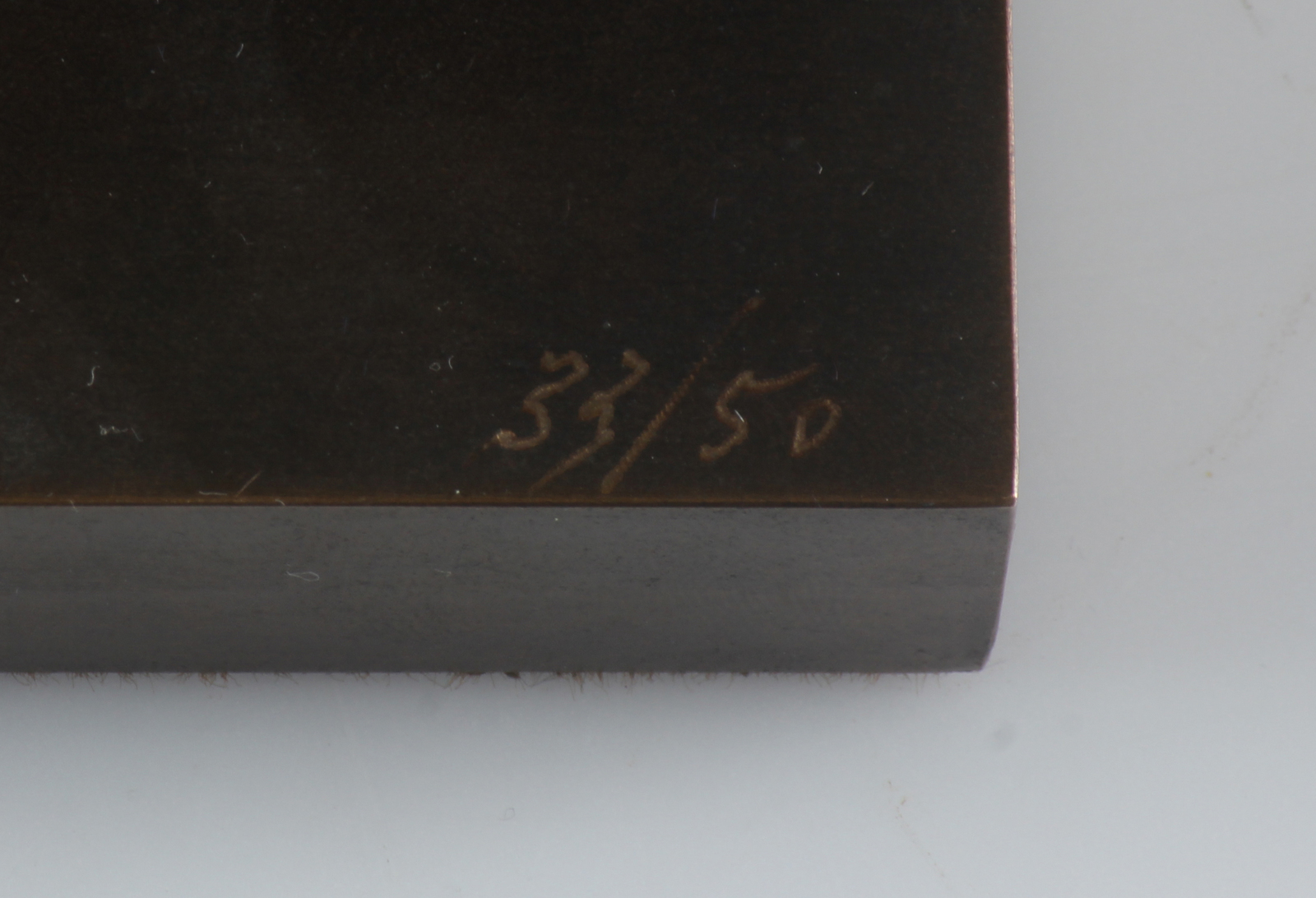 POMODORO ARNALDO (n. 1926) Disco. 1995. Bronzo. Cm 13,00 x 16,00. 33/50. Firma e tiratura incisa alla base. Autentica dell'artista su fotografia. Prodotto per Indicod.