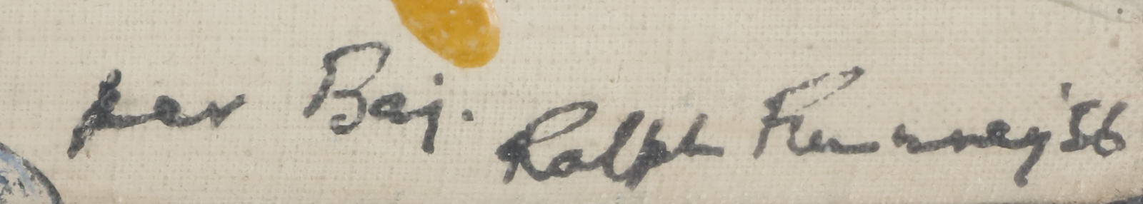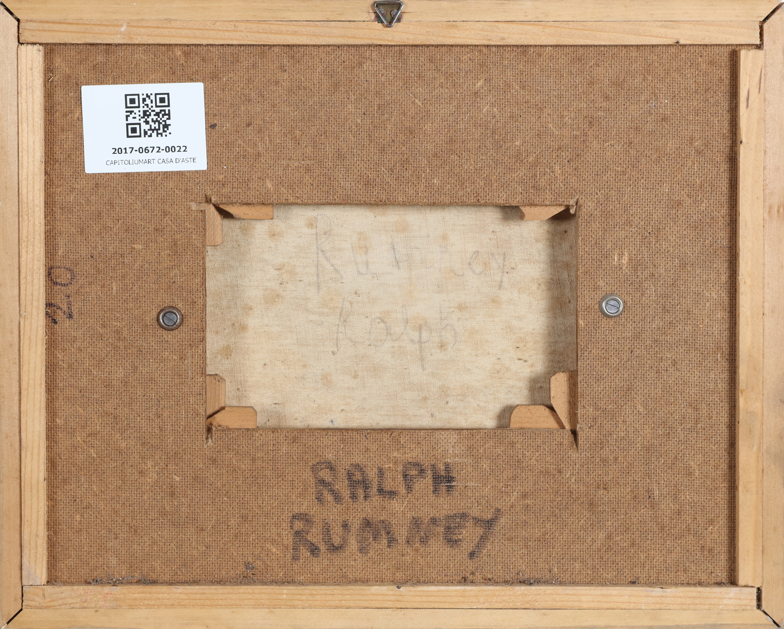 RUMNEY RALPH (1934 - 2002) Senza titolo. 1956. Olio su tela . Cm 23,50 x 17,00. Firma, dedica e anno in basso a destra. Firma al retro. Cornice presente