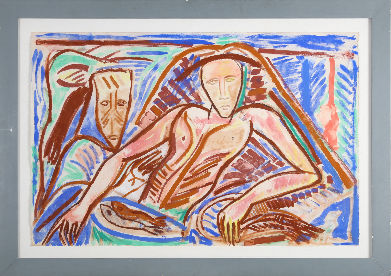 PALADINO MIMMO (n. 1948) Untitled. 1983. Watercolour on paper. Cm 120,00 x 80,00. At the back signature, year and Galerie Michael Haas, Berlin label. Provenance: Margiacchi Gallery, Arezzo; Private collection, Arezzo. Cornice presente