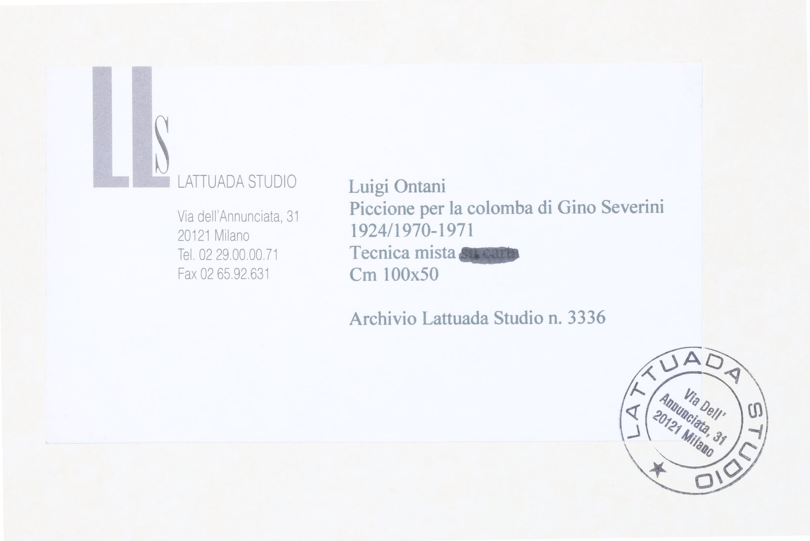 ONTANI LUIGI (n. 1943) Piccione per la colomba di Gino Severini. Tecnica...