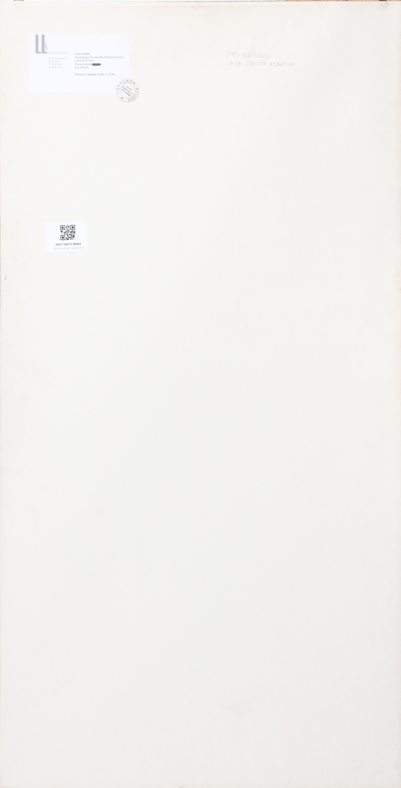 ONTANI LUIGI (n. 1943) Pigeon for Colombia of Gino Severini. Mixed media on glass. Cm 50,00 x 100,00. Signature lower center. At the back Studio Lattuada, Milan label. Provenance: Martini Auction House, Brescia. Cornice presente