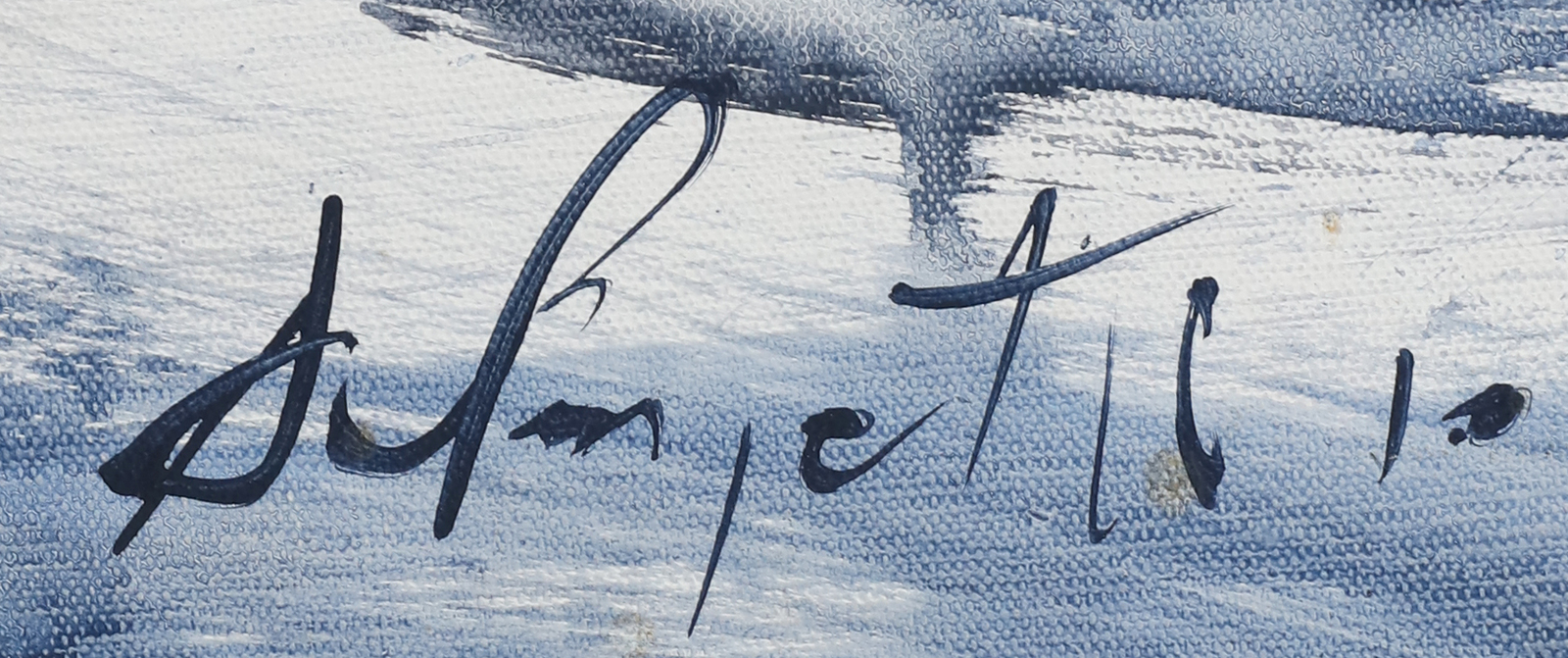 PAPETTI ALESSANDRO (n. 1958) Day. 2010. Oil on canvas . Cm 98,00 x 170,00. Signature lower left. At the back title, signature and year.