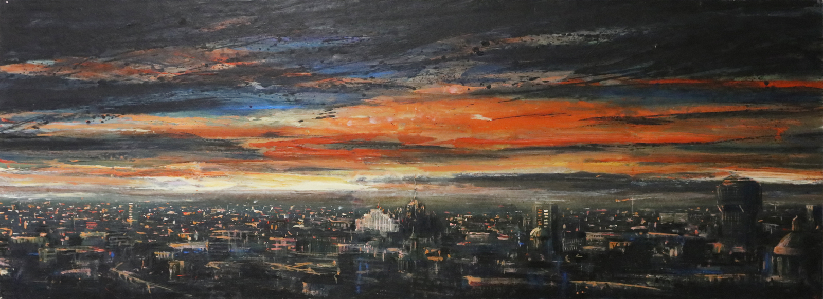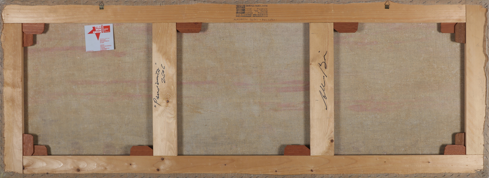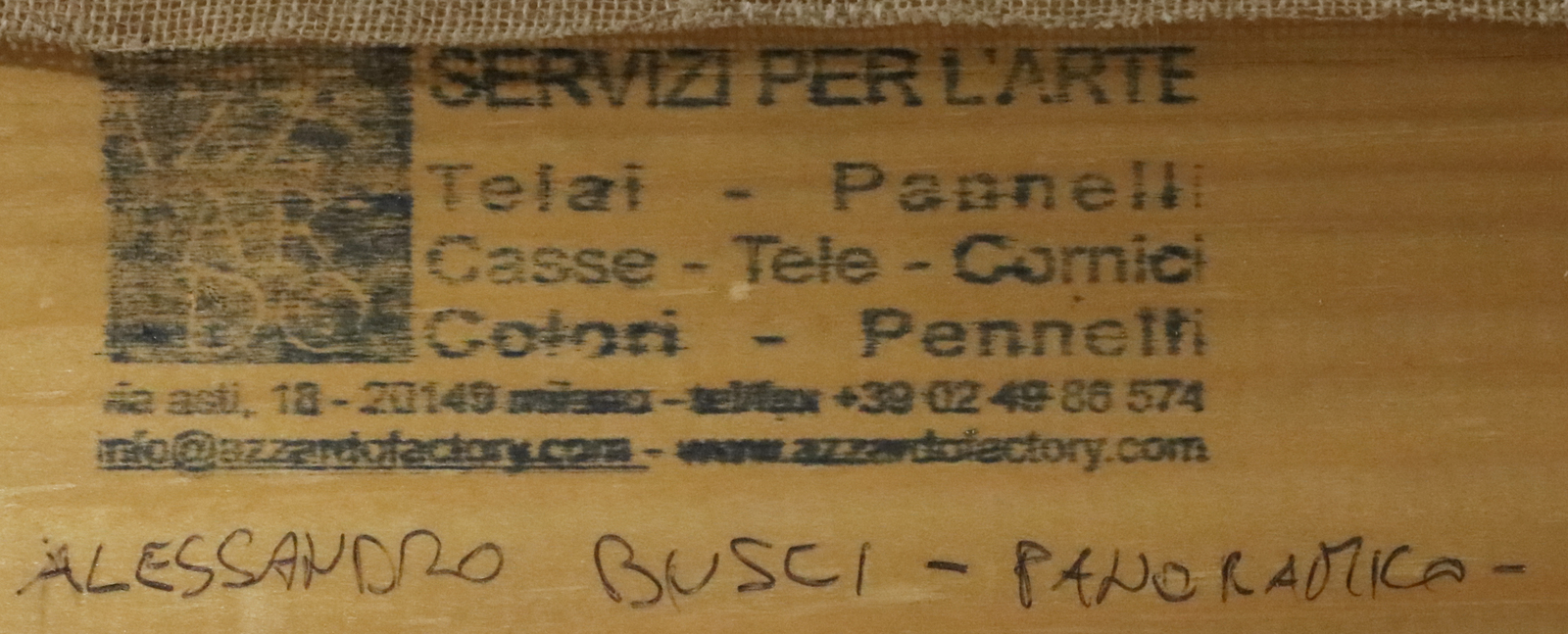 BUSCI ALESSANDRO (n. 1971) Panoramica. 2006. Olio su carta su tela. Cm 200,00 x 60,00. Firma in basso a destra. Al retro titolo, firma, anno e cartiglio espositivo della 54° Biennale, Venezia.