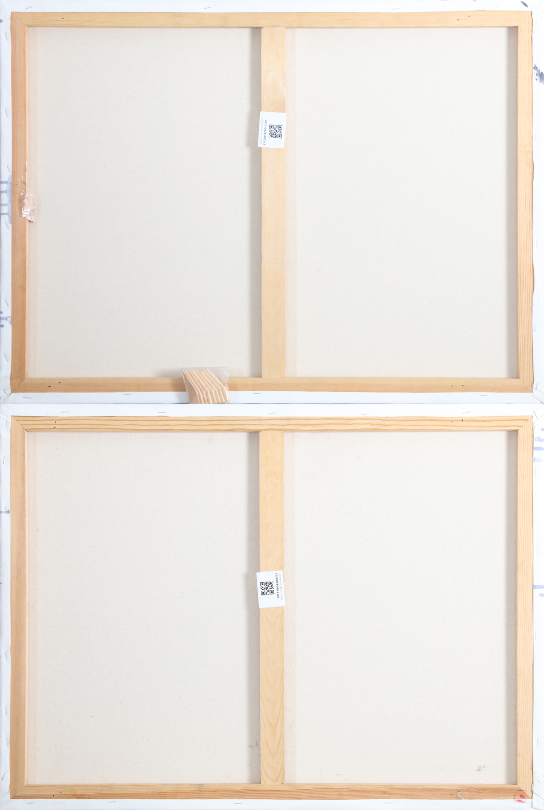 HUI ZHANG (n. 1969) Diptych. Dancer with mustache. Oil on canvas . Cm 80,00 x 120,00. Single size: 60x80 cm. Signature lower right.