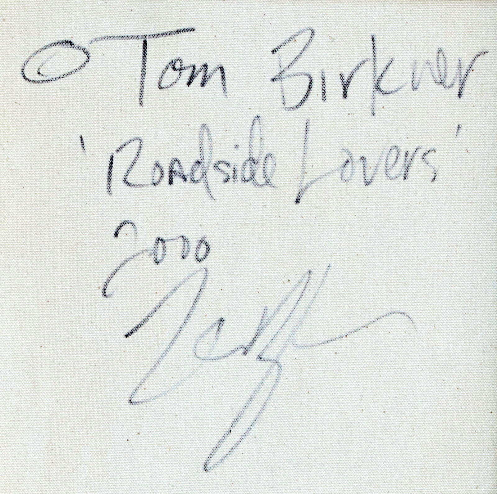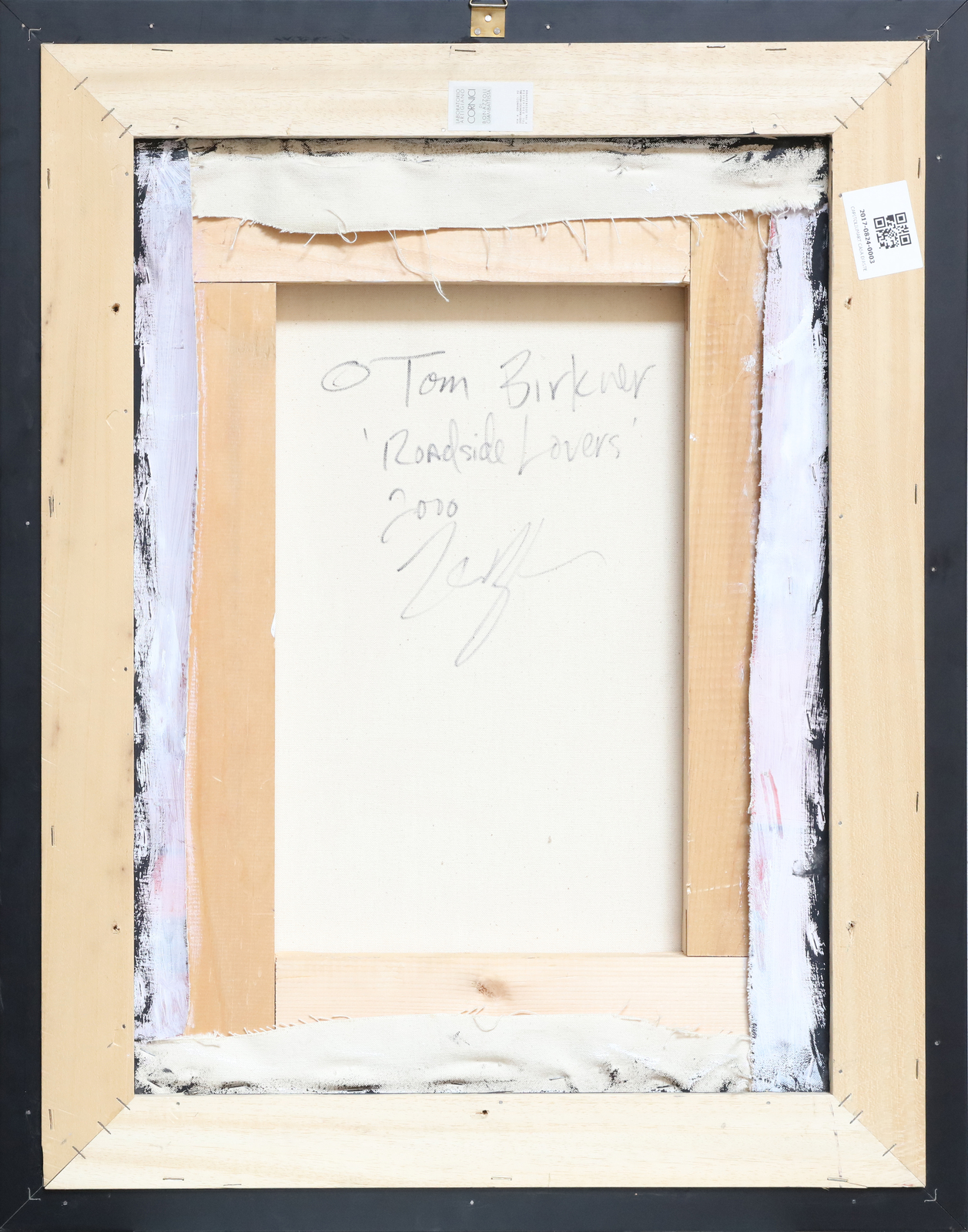 BIRKNER TOM (n. 1966) Roadside lovers. 2000. Tecnica mista su tela. Cm 41,00 x 58,00. Al retro titolo, firma e anno. . Cornice presente
