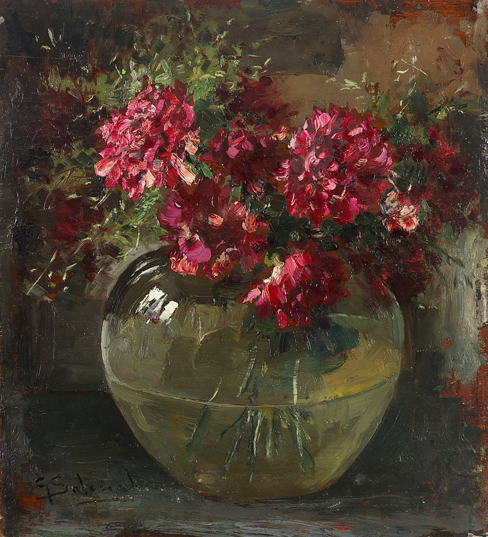 Giuseppe Solenghi (Milano 1879 - Cernobbio 1944)"Vaso con fiori rossi"olio su...