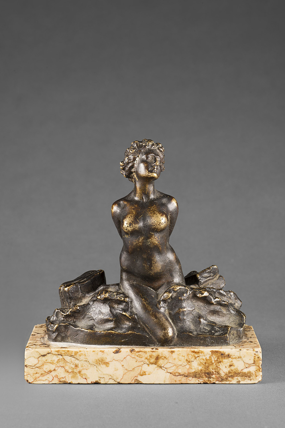 scultura in bronzo (h cm 12) poggiante su base in marmo