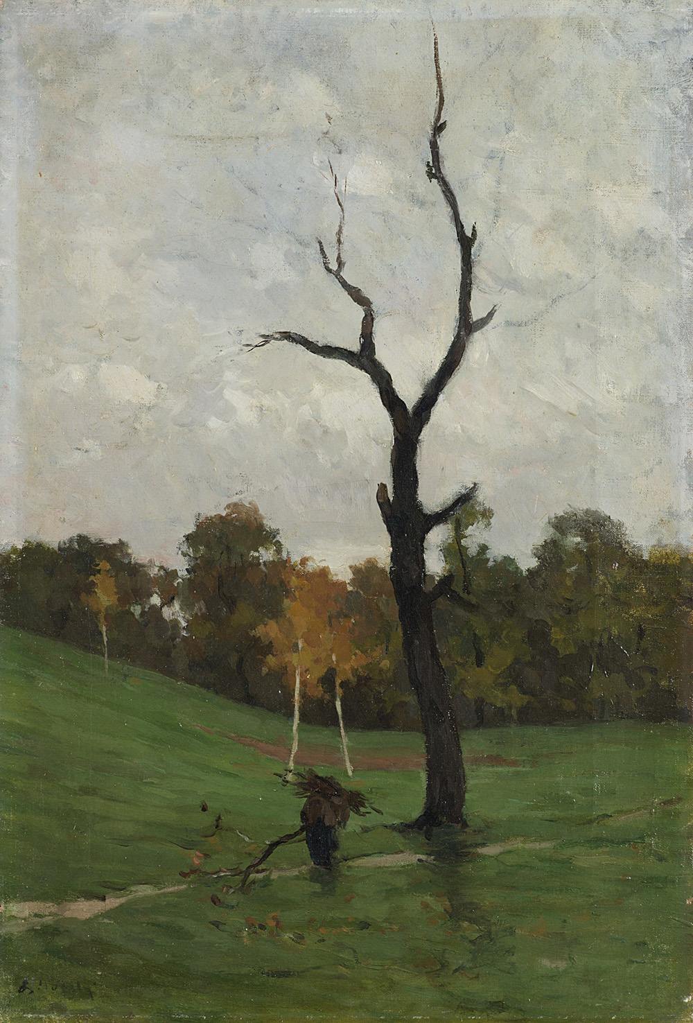 Oreste Silvestri (Pollone 1858 - Milano 1936)"Paesaggio con albero spoglio"...