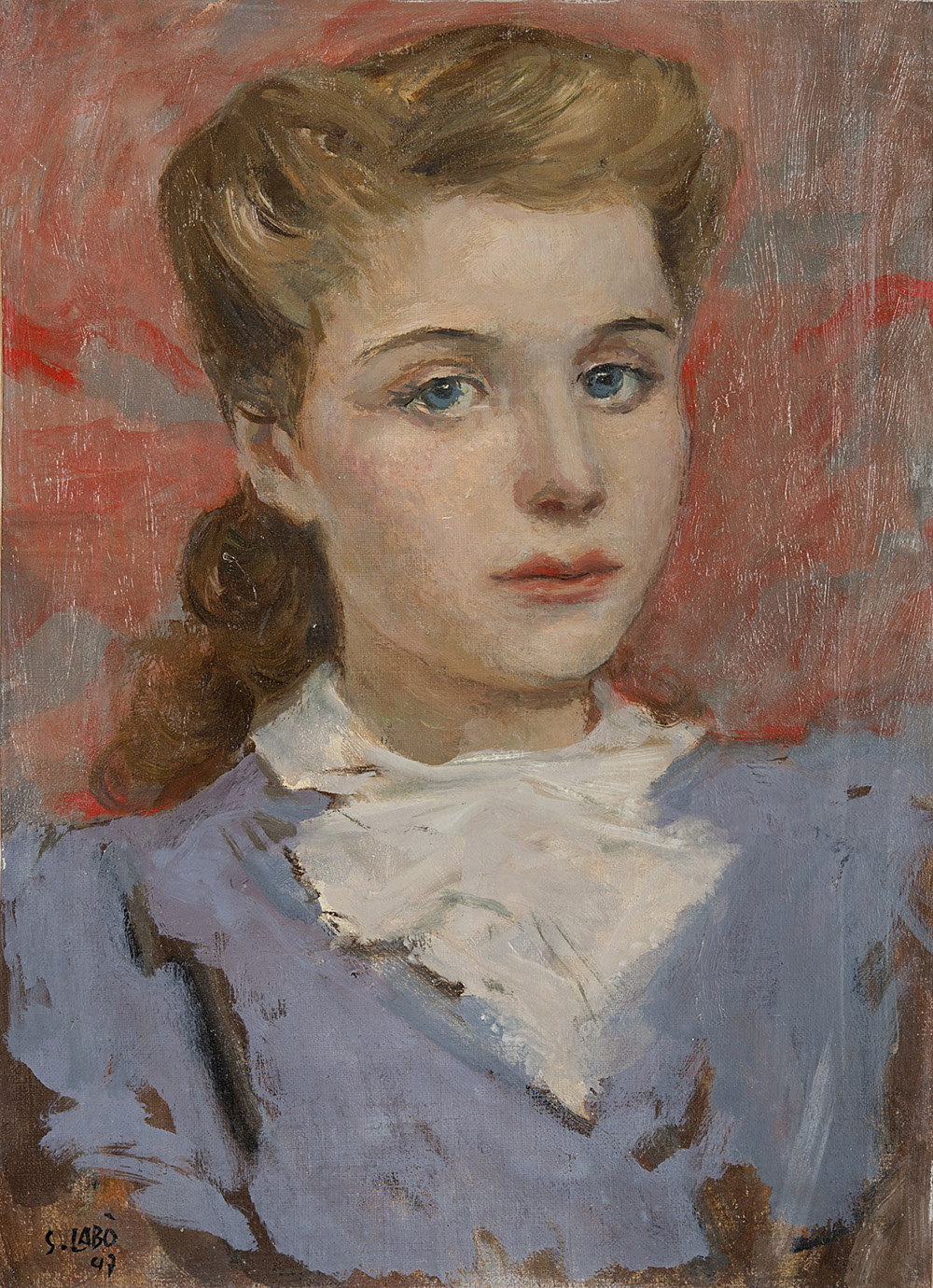 Savinio Labò (Milano 1899 - 1976)"Ritratto femminile" '47olio su tela (cm...