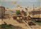 Silvio Poma (Trescore Balneario 1840 - Turate 1932)"Al porto"olio su cartone...