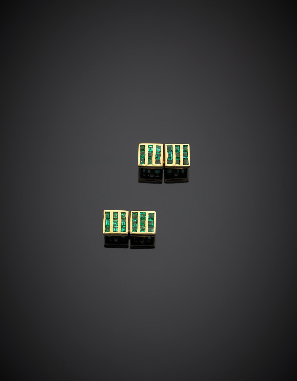 Yellow gold carrè emerald cufflinks, g 4.60.