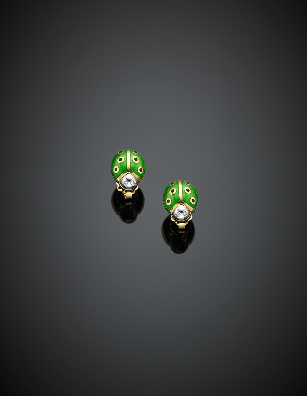Lot 1007 | Orecchini a guisa di coccinelle in oro giallo e bianco, smalti e diamanti,...