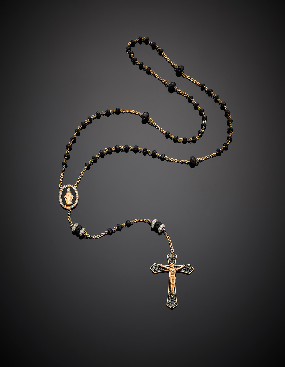 CRIVELLIRosario in oro rosso con diamanti neri e incolori e altre gemme nere...