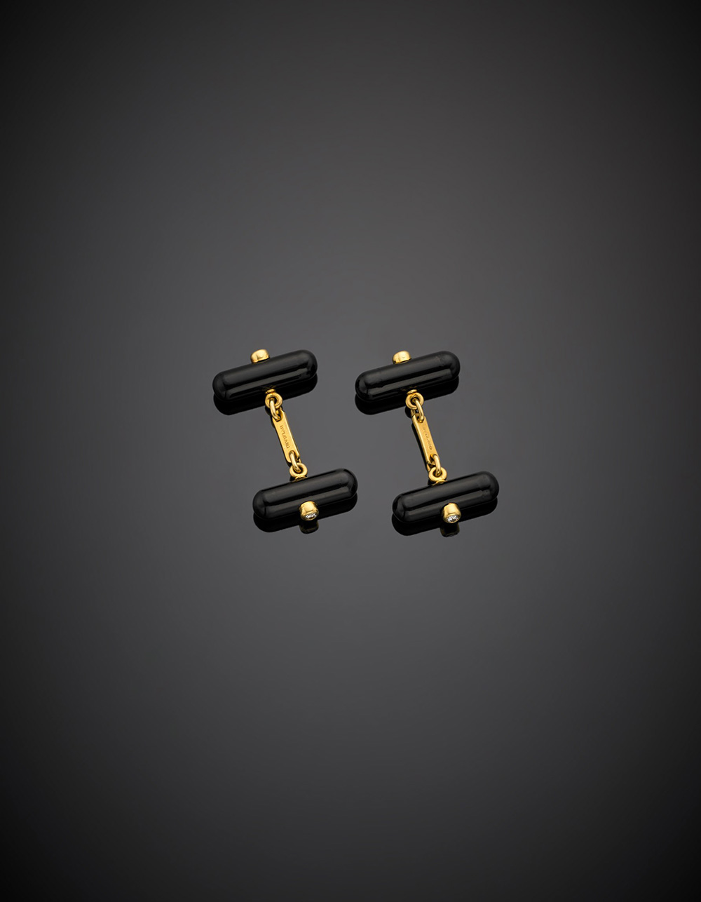Lot 1014 | BULGARIGemelli in oro giallo, onice e diamanti, g 5,24. Firmati...