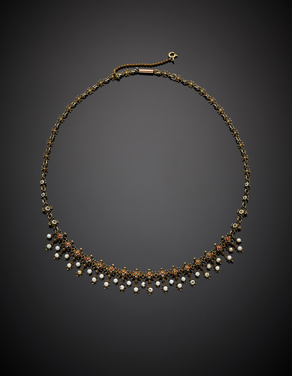 Collier in oro 333/1000 con smalti colorati, g 17,51, lungh. cm 43,80...