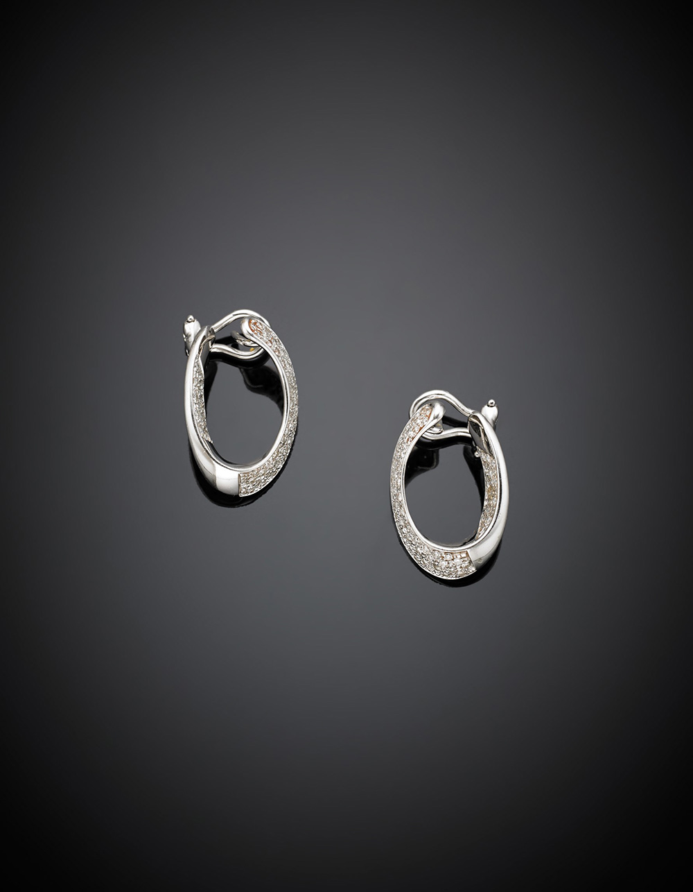 Orecchini in oro bianco con diamanti rotondi taglio a brillante, g 12,47.