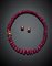 Ovaloid and faceted ruby bead jewellery set composed of a graduated necklace and earrings, bead diam. from mm 10 to mm 16.50, earring bead diam. mm 10.50, in all g 128.60, lenght cm 40.8 circa. Necklace length cm 40.8