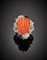 Pink 9K gold and silver carved pink orange coral ring, accented with diamonds, rubies, sapphires and emeralds, g 22.10 size 18/58.