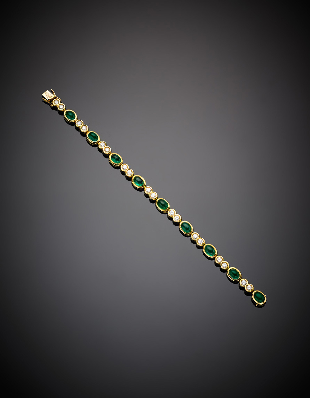 *MISSIAGLIABracciale in oro giallo con diamanti rotondi e smeraldi ovali...