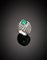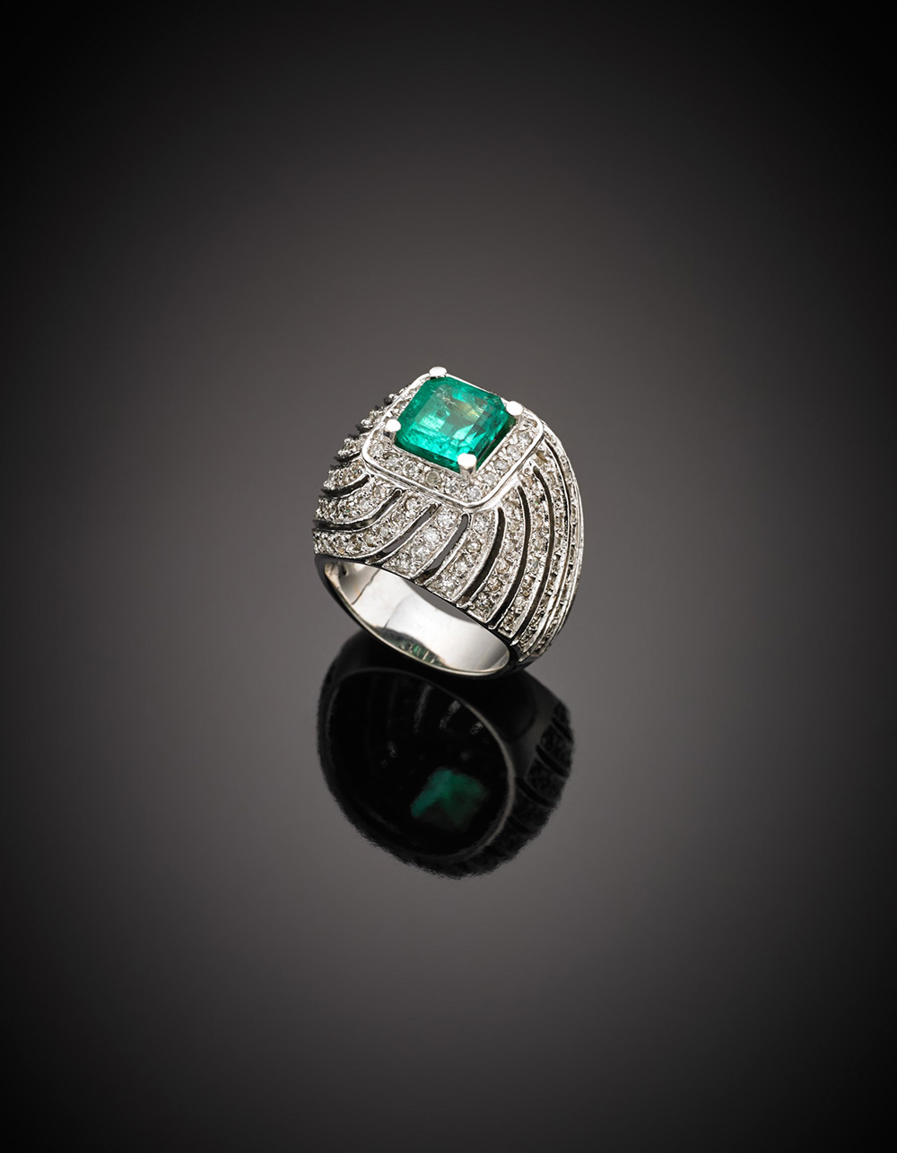 Anello in oro bianco con diamanti a contornare uno smeraldo ottagonale g...