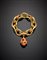 Bracciale in oro giallo a grande rolè ovale liscio, rigato con charm e rifinito in corallo rosso, g 69,19, lungh. cm 21,50 circa.