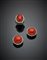 White gold diamond and red coral set of jewellery composed of a ring and earrings g 40.10, diam. cm 2.5 size 11/51. Signed NANNINI on the earrings