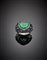 Anello bombato in oro bianco e giallo con smeraldo colombiano a cuore di ct.12,11 e zaffiri cabochon g 21,20 misura 18/58 (mancanze)