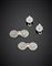 Gemelli e due bottoni in oro bianco con lavorazione lucida e zigrinata con al centro diamanti rotondi, complessivi g 15.