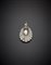 Pendente a conchiglia in oro bianco con perla a goccia naturale d'acqua salata e diamanti, g 10,11, lungh. cm 4,40 circa.