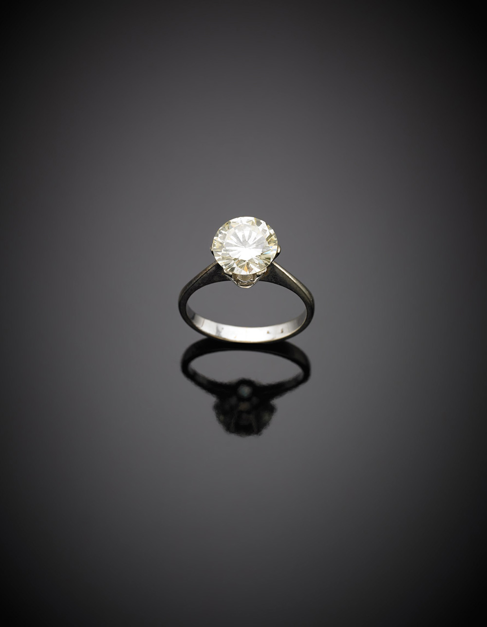 Anello in oro bianco con diamante solitario di ct. 1,97 circa, g 2,81.