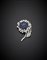 Broche in oro bianco a guisa di fiore con zaffiri rotondi e a goccia no heat...
