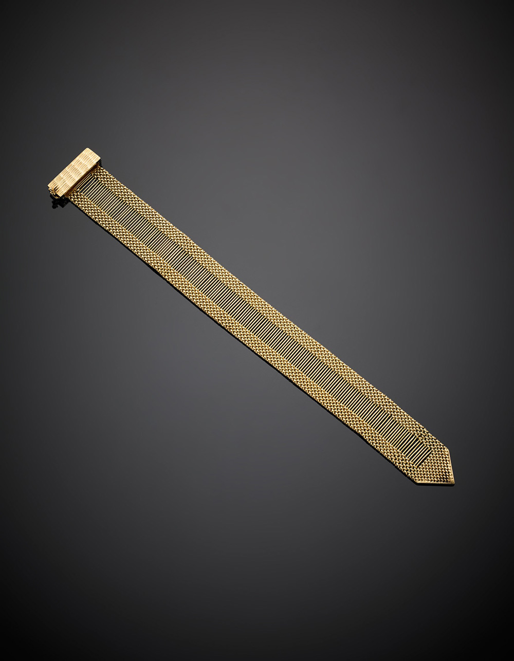Yellow gold buckled strap bracelet, g 46.48, length cm 21.00, h cm 2.00 circa.